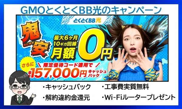 なお、月額料金が安いだけでなく、キャンペーンも充実している点もGMOとくとくBB光の魅力です。