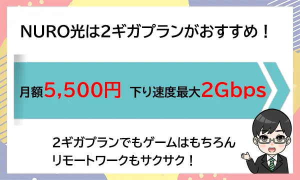 それであれば月額料金の安いNURO光2ギガを選択するのがおすすめです。